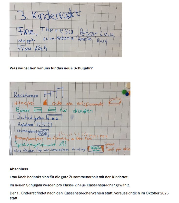 Der nächste Kinderrat wird im Januar 2025 sein. Dann wird geschaut, was alles umgesetzt wurde.